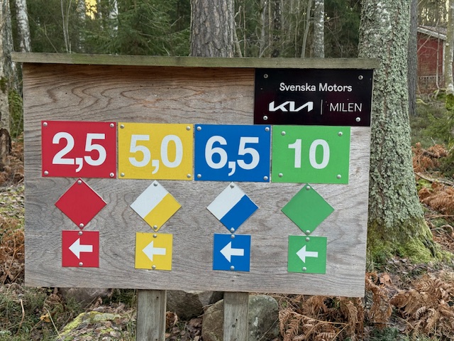 2,5 km röd (elljusspår, belysningen tänds 05.00 och är tänd till 23.00).
